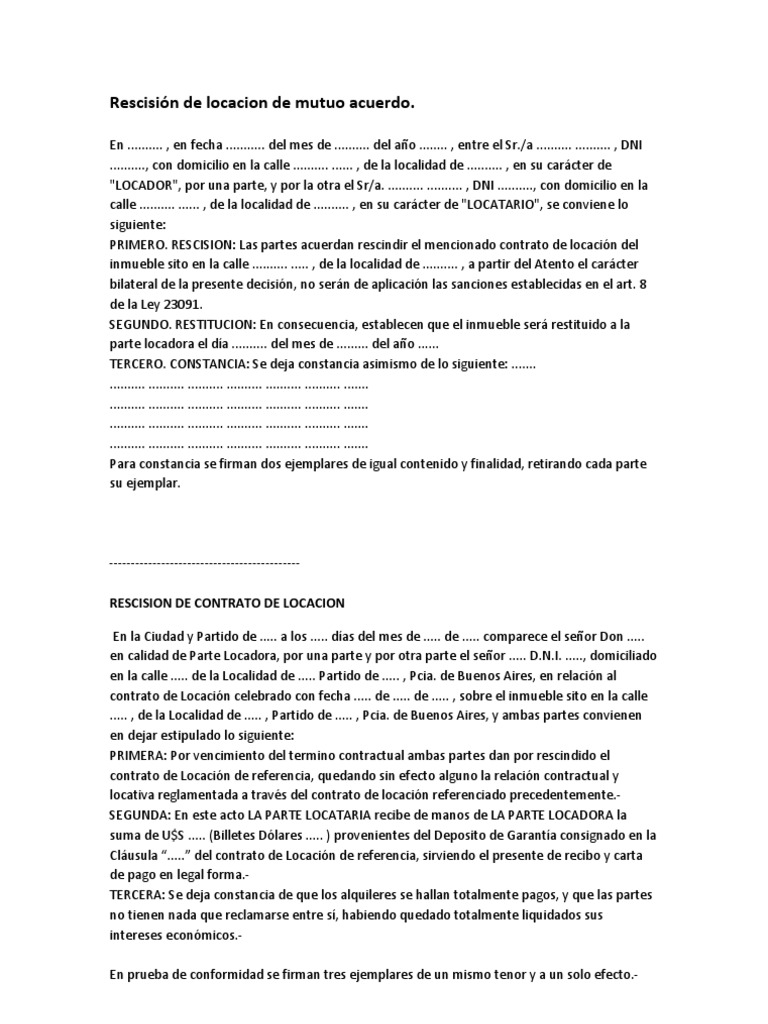 Modelo Rescision De Contrato Pdf Alquiler Gobierno