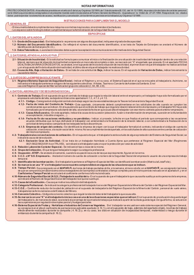 Respecto de los citados datos podr ejercitar los derechos de acceso rectificacin y cancelacin en los trminos previstos en la indicada LeyOrgnica151999. Modelo TA2S - Solicitud de alta baja y variacin de datos del trabajador por cuenta ajena o asimilada. El modelo TA2S es un impreso que sirve para darte de alta o baja a un trabajador por cuenta ajena o asimilado.