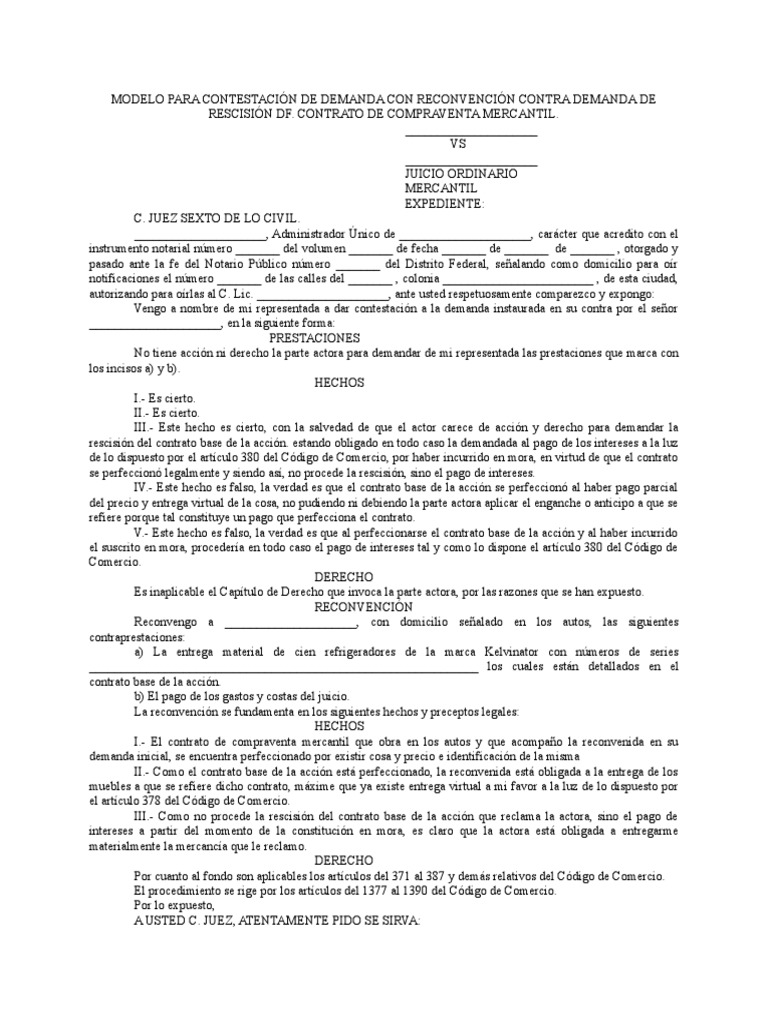 Modelo Para Contestacion De Demanda Con Reconvencion Contra Demanda De Rescision Df Instituciones Sociales Ciencias Sociales