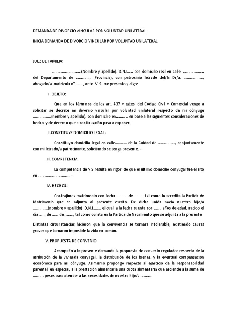 Modelos Demanda De Divorcio Divorcio Matrimonio