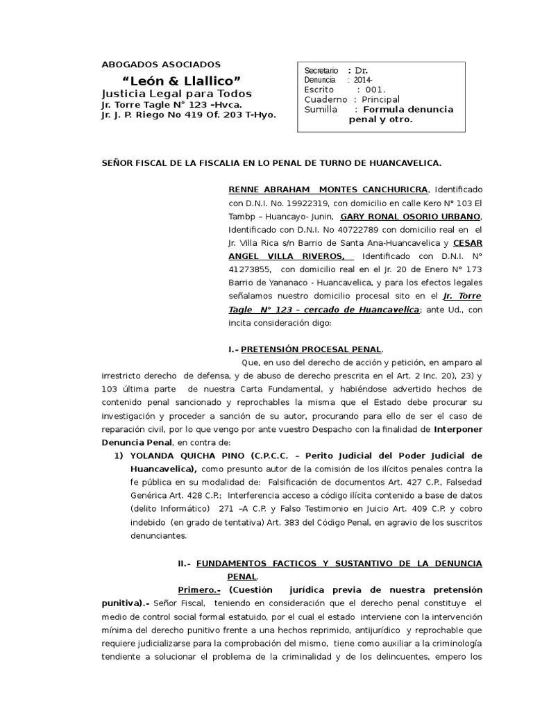 Denuncia Penal Delito Derecho Penal