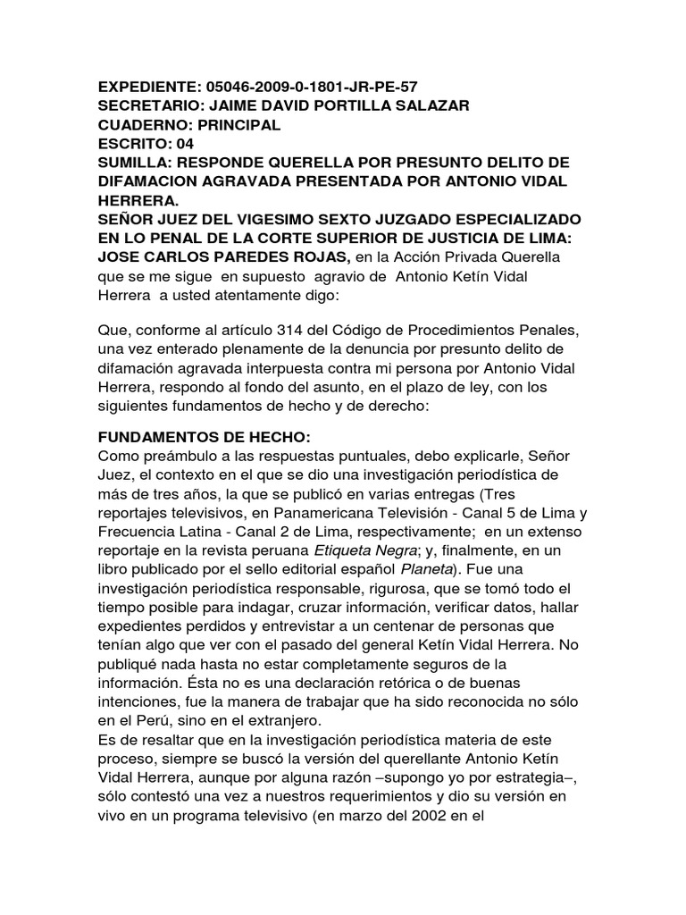 Modelo De Contestacion De Demanda Por Querella Gobierno Policia