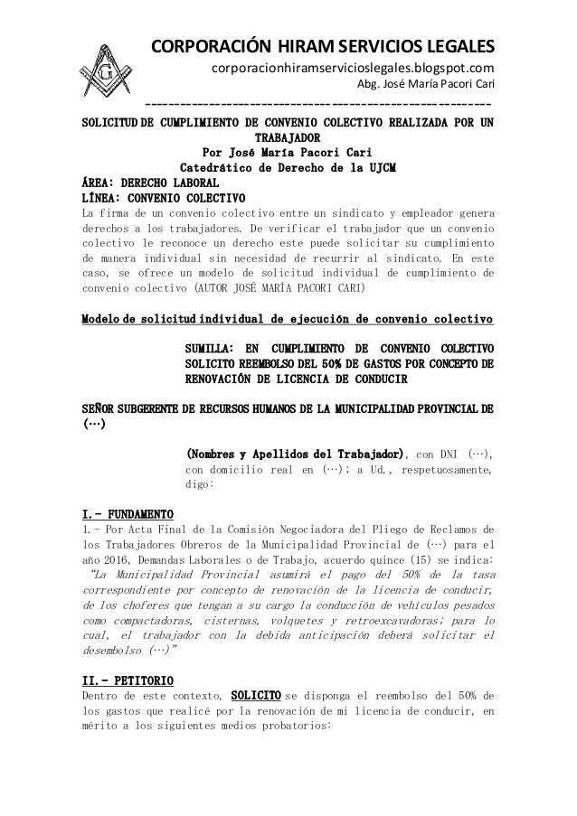 Solicitud De Cumplimiento De Convenio Colectivo Realizada Por Un Trab