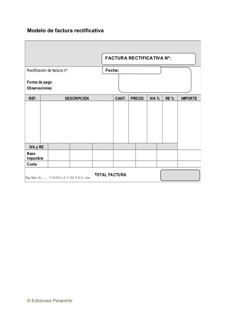 Un modelo de factura rectificativa en blanco Una factura rectificativa es un tipo de factura que reemplaza a una factura en la que hayamos cometido un error o que no tiene dentro todos los datos que debera. Porque la factura rectificada no cumple los requisitos de facturacin previstos por los arts. Aumento de base imponible.